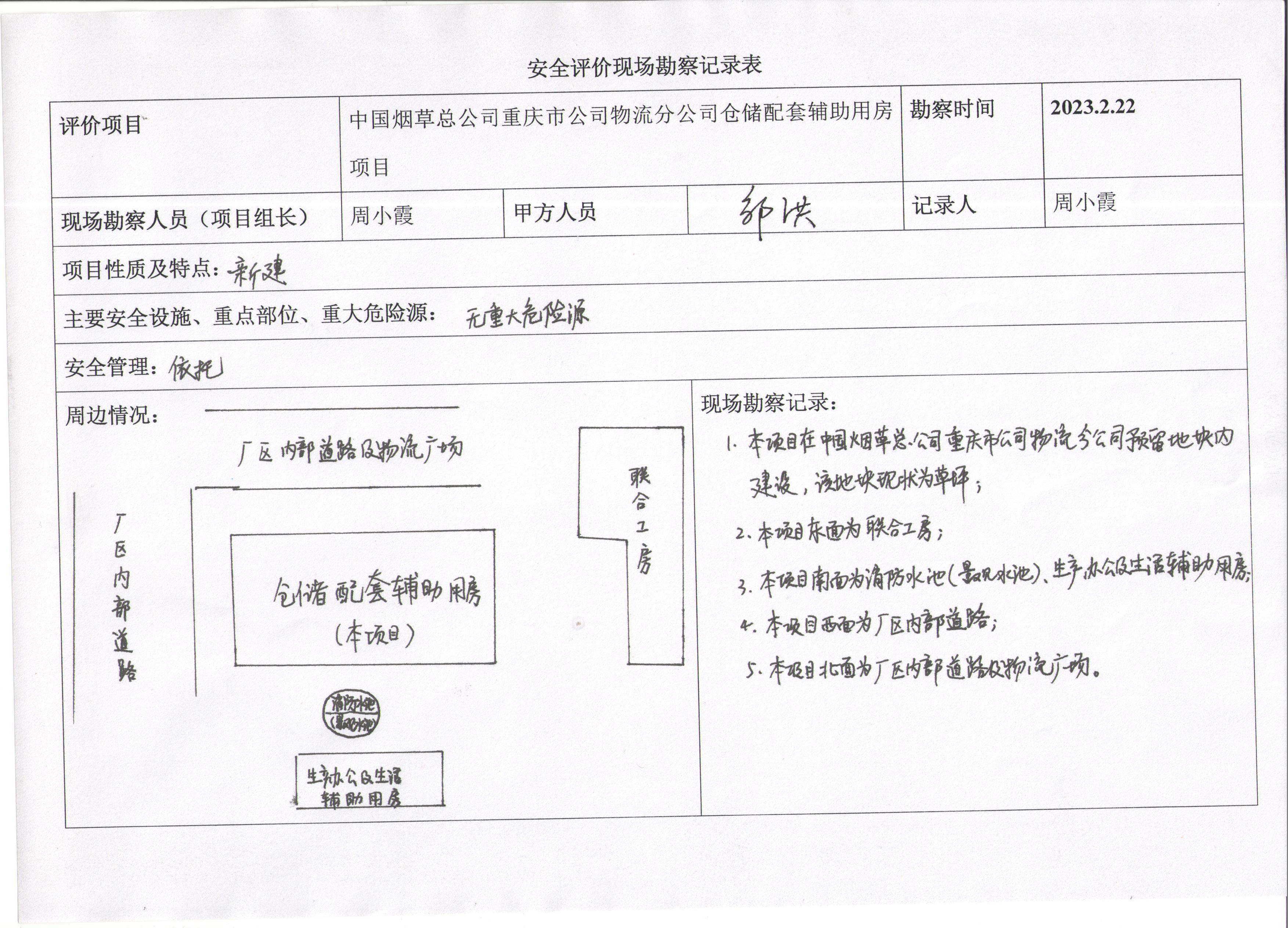 現場勘查人 | 周小霞 | 業主陪同人 | 鄒洪 | |||||