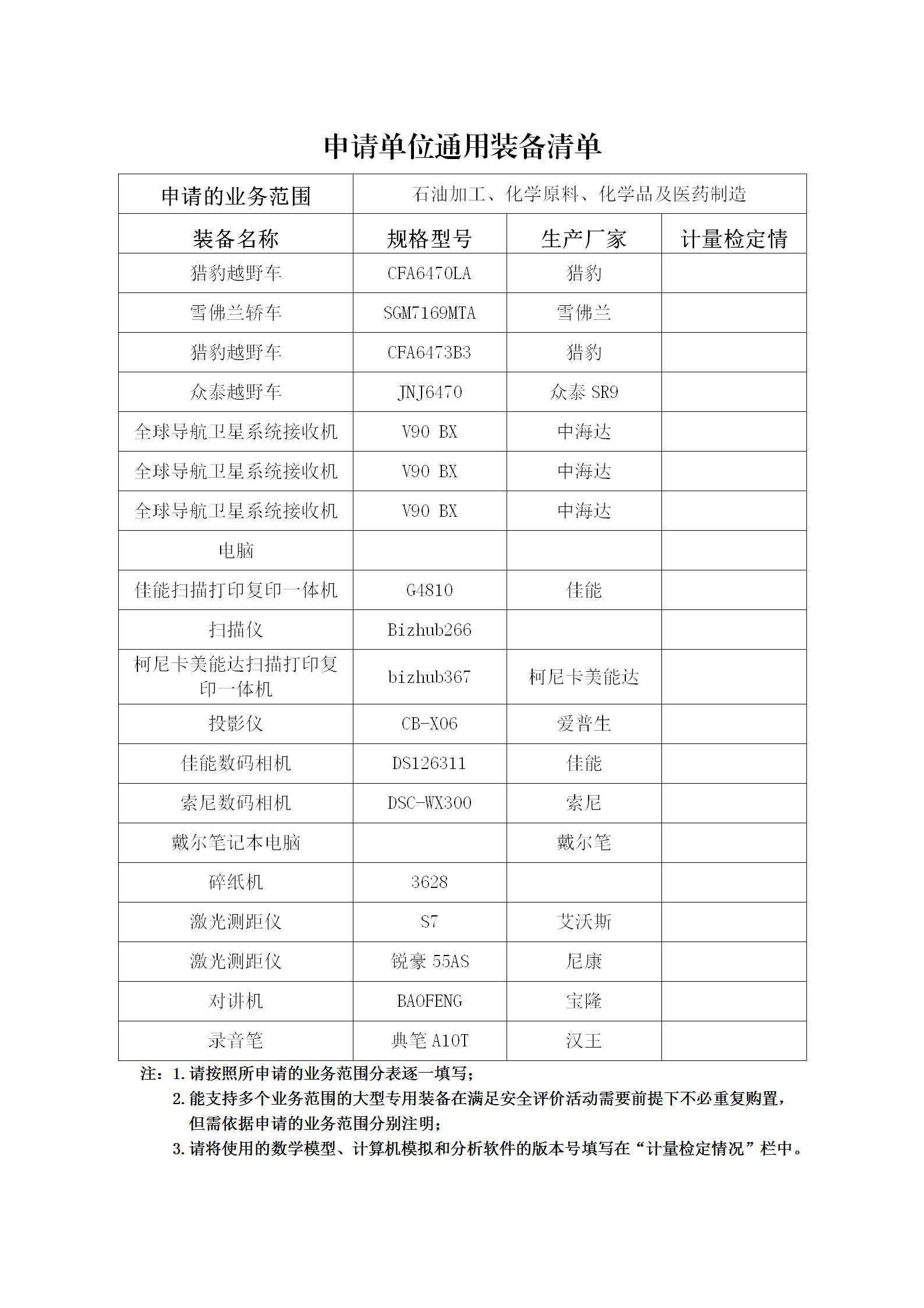 昭通市鼎安科技有限公司專業設備、設施一覽表