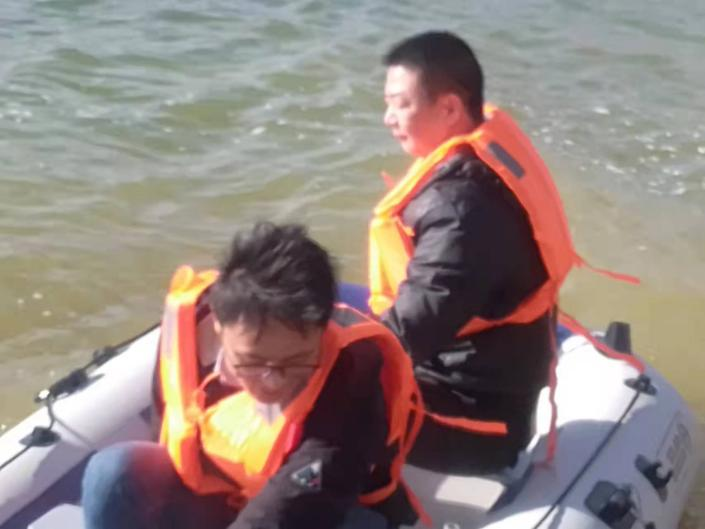 2022年1月19日下午,鼎安第一艘航測船下水。這是個有陽光的冬日,寒風(fēng)依舊呼嘯,寒氣依舊逼人,永豐水庫湖面上,一艘銀色航測船緩慢移動后,逐漸快了起來,一群水鳥在上空盤旋歡鳴。藍色的湖上泛起點點金光,航測船的紅色救身衣在風(fēng)中獵獵作響,為這冬日的湖增添幾分嫵媚。